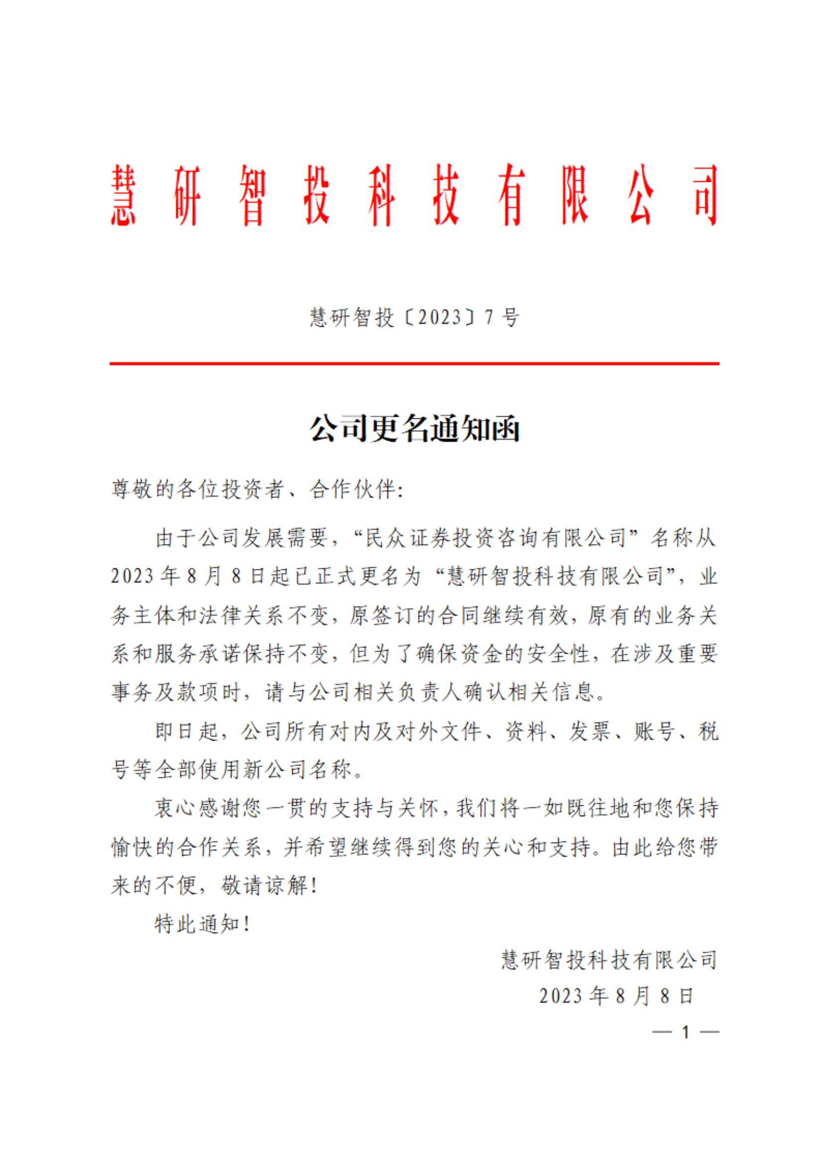 1、我司是持牌正規(guī)經(jīng)營(yíng)的證券投資咨詢(xún)公司,所有與客戶(hù)的溝通均是通過(guò)官方認(rèn)證的企業(yè)微信進(jìn)行,決不會(huì)以任何名義要求客戶(hù)添加任何形式的QQ或微信群及其他溝通渠道,或引導(dǎo)客戶(hù)下載除慧研智投電腦/手機(jī)客戶(hù)端以外的任何軟件,如投資者收到利用我公司名義進(jìn)行其它內(nèi)容推薦的,或宣傳我司與其他機(jī)構(gòu)有合作的,請(qǐng)投資者保持警惕謹(jǐn)防上當(dāng)受騙,如有疑問(wèn)可撥打我司電話(huà)0351-5665501、4001066887進(jìn)行核實(shí)。